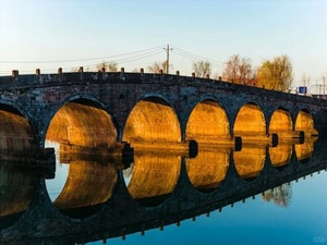 桥拱与倒影构成完美的圆